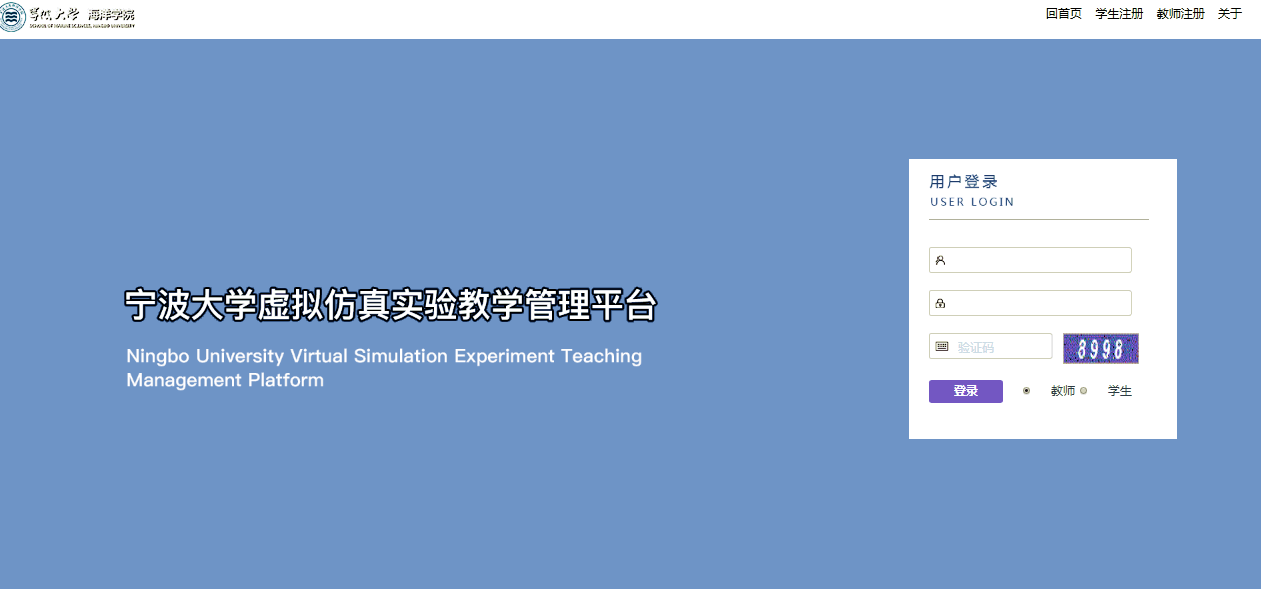 3、点击虚拟仿真模块,选择用户身份(教师/学生),完成注册。