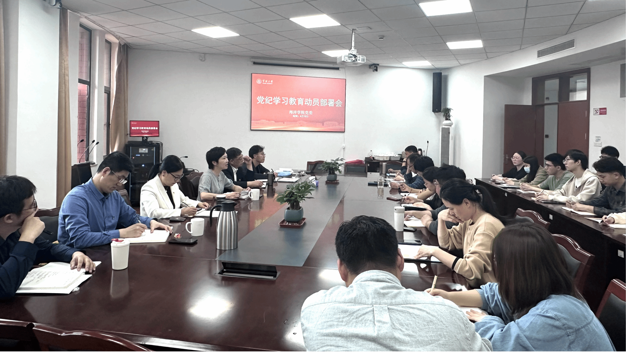 会议强调,要准确把握党纪学习教育的目标要求,推动纪律教育走深走实。全院党员干部要做到学纪、知纪、明纪、守纪,各师生党支部要充分发挥战斗堡垒作用,运用好学习强国平台等资源,结合“三会一课”等方式,做到逐章逐条学,确保党纪学习教育质量。要加强警示教育,深刻剖析典型案例,结合“海洋之星”评选活动树立正面典型。同时,要围绕学院中心工作,把党纪学习转化到行动当中去,推动学院及学校各项事业大发展。