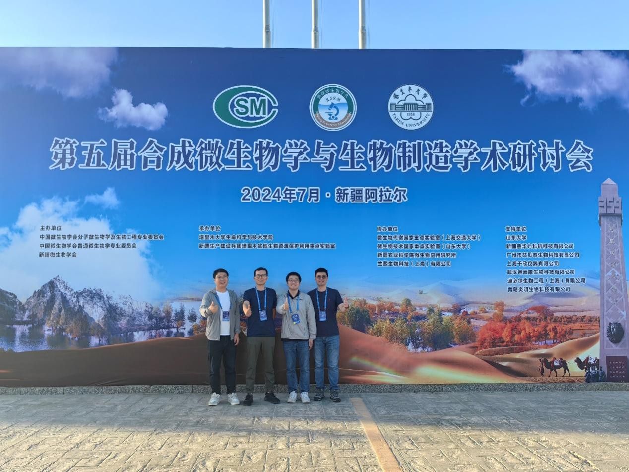 海洋环境微生物与藻类生物技术研究团队负责人姜海波教授带领团队成员陈未中副研究员、王鑫威助理研究员、黄海龙助理研究员至新疆维吾尔自治区阿拉尔市参加第五届合成微生物学与生物制造学术研讨会。合成生物学作为21世纪生物技术领域颠覆性创新和学科交叉融合的前沿,受到各国政府、学术界、产业界高度关注,是未来中国经济转型的新质驱动力。会议期间团队成员与会议承办单位塔里木大学的学者们针对合成生物学前沿:以微藻作为底盘生物进行高附加值产品的开发展开讨论,为阿拉尔市在工业、农业利用微藻开展新型生物制品的研制提供了科学支持和建议。