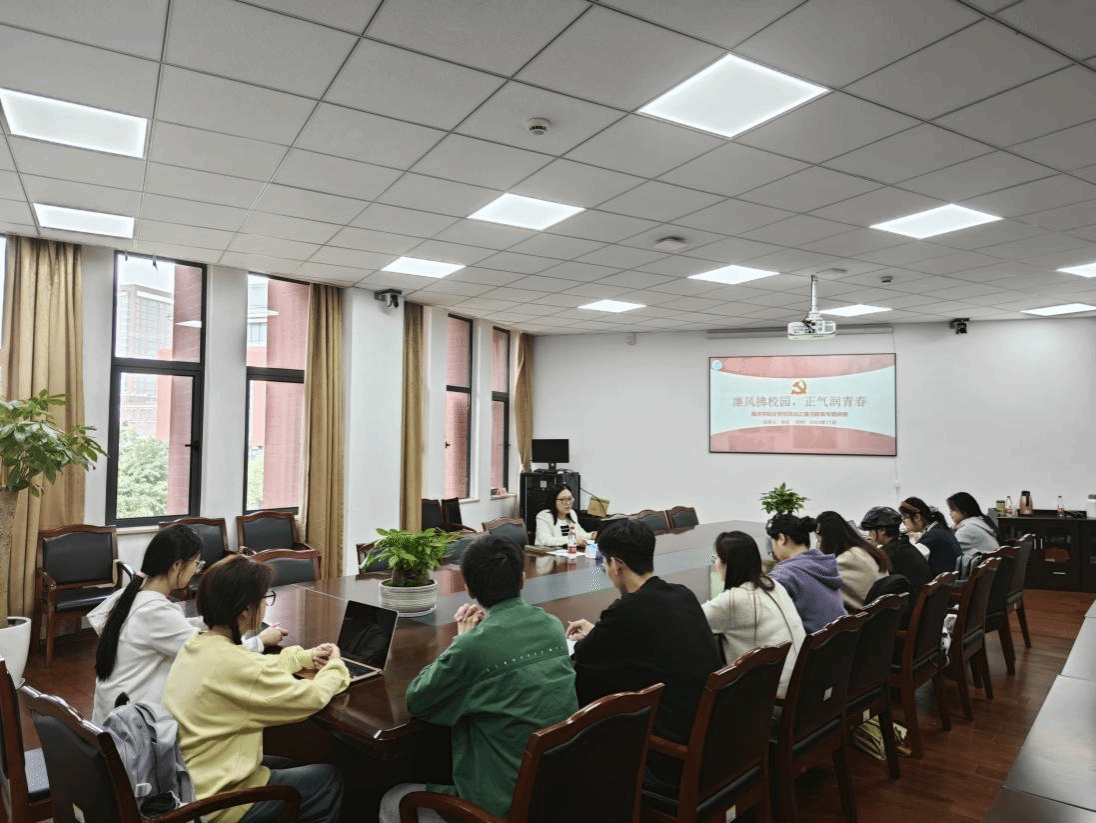 在东楼303会议室举行“廉风拂校园,正气润青春”廉洁教育专题讲座。讲座由学院党委副书记、纪委书记张乐老师主讲,全体发展对象参与。