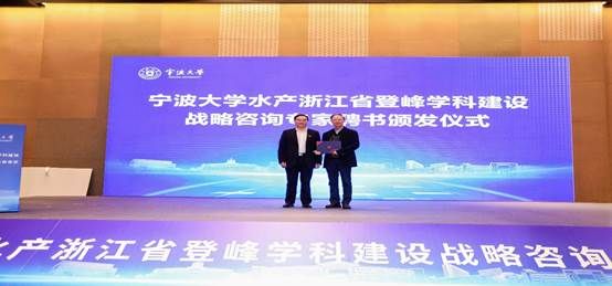 水产浙江省登峰学科建设战略咨询专家委员会委员聘书颁发仪式。蔡荣根为麦康森、包振民、刘少军、陈松林、薛长湖、赵玉芬、陈剑平、朱志伟、张传增、宋林生、何建国、周小秋、张显良、严小军现场颁发聘书。焦念志、桂建芳和宋微波线上参会并接受聘任。