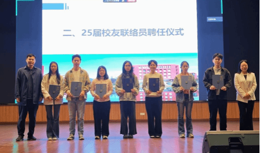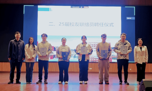 2025届校友联络员聘任仪式。张乐副书记向各班校友联络员颁发聘书,希望他们积极履行职责,搭建母校与校友之间沟通的桥梁和纽带,时刻关注母校的发展,积极参与校友活动,共同为母校的繁荣发展添砖加瓦。