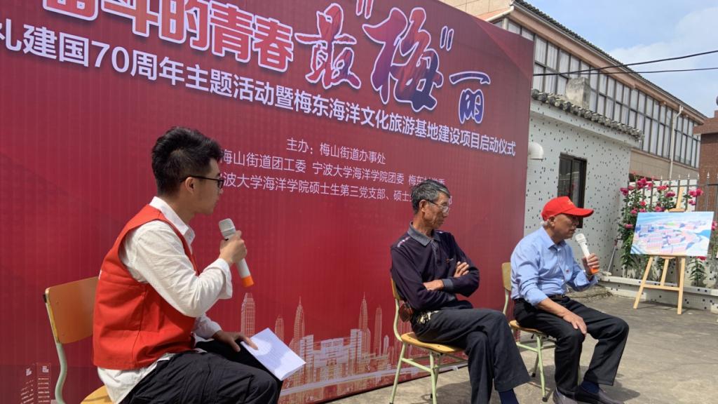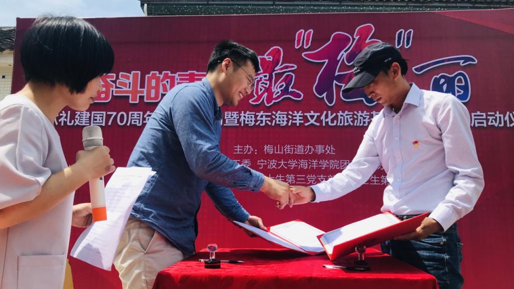 团委开展现场结对共建签约仪式,共建开展的“青年党员助力海洋乡村生态建设——植物科普宣传下乡”党日活动也正式启动。梅山街道党工委委员吴文华、学院团委书记、学生党支部书记、街道党团干部和居民、学生党员义工等50余人参加活动。