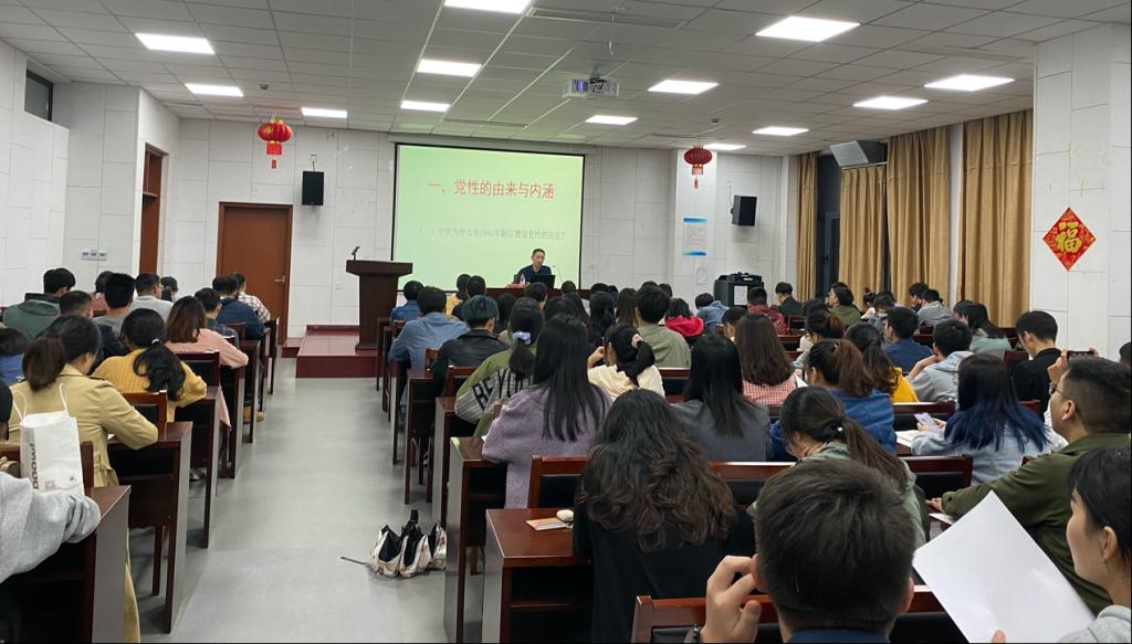 党课紧紧围绕“党性的由来与内涵”和“如何增强党性”两个方面展开,并系统深入地对学院党建工作做了讲解分析。授课过程中,蔡书记对“党性”作出了详细的解释,理论联系实际的思想方法、工作作风就是党性,主要表现为统一性、阶级性、人民性,坚强的党性是政党的灵魂。我们要始终牢固树立党的观念、以人民为中心的观念、终身改造的观念来不断增强党性。课程最后,蔡书记为全体学员总结了三点启示:对个人而言,加强党性修养是领导干部树立坚定的信仰、培养健全的人格、安心立命、人生幸福、家庭美满的政治保障;对党而言,加强党性修养是执政党建设的重要内容,对保证党的团结统一、密切党群关系、巩固党的执政基础有着不可忽视的作用;对国家而言,加强党性修养是领导干部以自身修养确保正确行使权力、修正错误、提高政治素养和综合素质的重要途径。希望各位学员通过这次党课能自觉锤炼党性、提升素质,坚定理想信念,激发学习工作科研信心。