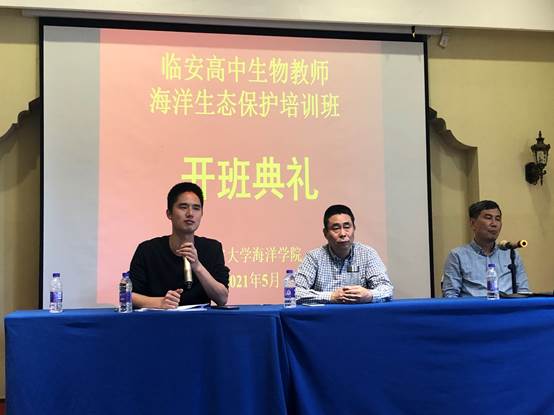 承办的“临安高中生物海洋生态保护项目式学习研究培训班”顺利开班,来自临安的40多名高中生物教师参加了本次培训。