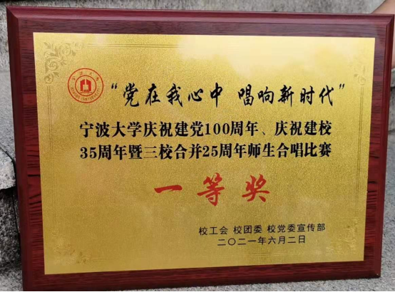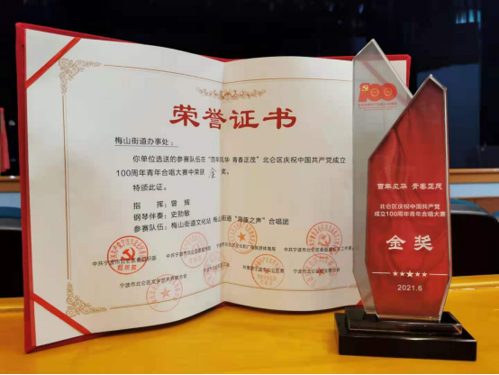 庆祝建党100周年师生合唱比赛一等奖后,代表梅山街道出征“百年风华 青春正茂”北仑区庆祝中国共产党成立100周年青年合唱大赛,再获金奖。