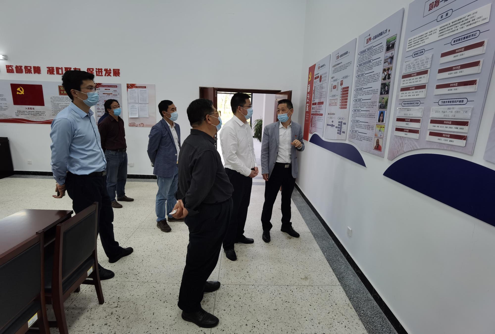 赵全军一行走访了学院“全国党建工作标杆院系”建设示范点,听取了学院负责人关于学院党委如何聚焦中心工作、“全国党建工作标杆院系”创建工作开展的基本情况、特色成效等内容进行了汇报,尤其是介绍了近年来学院在构建“党建+学科(群)”双促双进的“五五五”工作模式中的路径探索、思路考虑、成效难点等情况。参观调研了学院中试基地实验室,听取了基地建设情况、学科发展情况、团队建设情况以及服务地方发展中科研团队如何将东海青蟹在河南兰考和延津养活、养肥,变盐碱地为“致富田”等事迹,看望了基地实验室的师生团队。