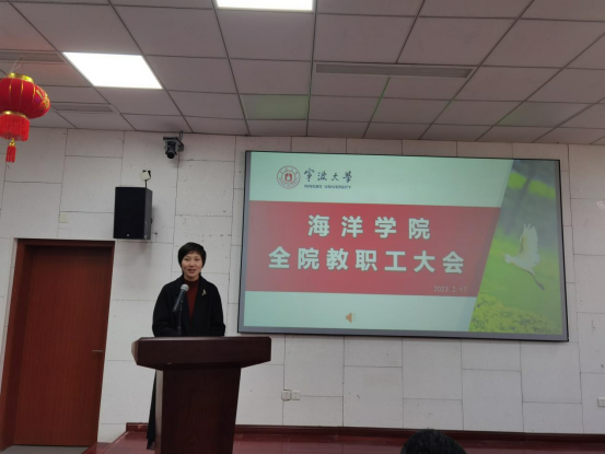2023年新学期全体教职工大会在东楼报告厅召开。会议由学院党委书记邵丽主持。