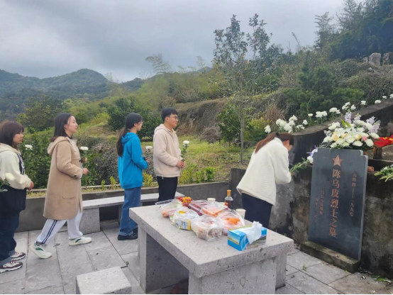 为弘扬英烈精神,坚定理想信念,3月31日,在陈乌皮烈士墓前,研究院全体师生怀着崇敬的心情列队肃立,聆听了亲历者那段刻骨铭心的历程,并依次并向烈士墓敬献鲜花;随后,全体人员向革命烈士三鞠躬并默哀致敬;最后,面向先烈墓碑,全体党员庄重地举起右臂,重温了入党誓词。