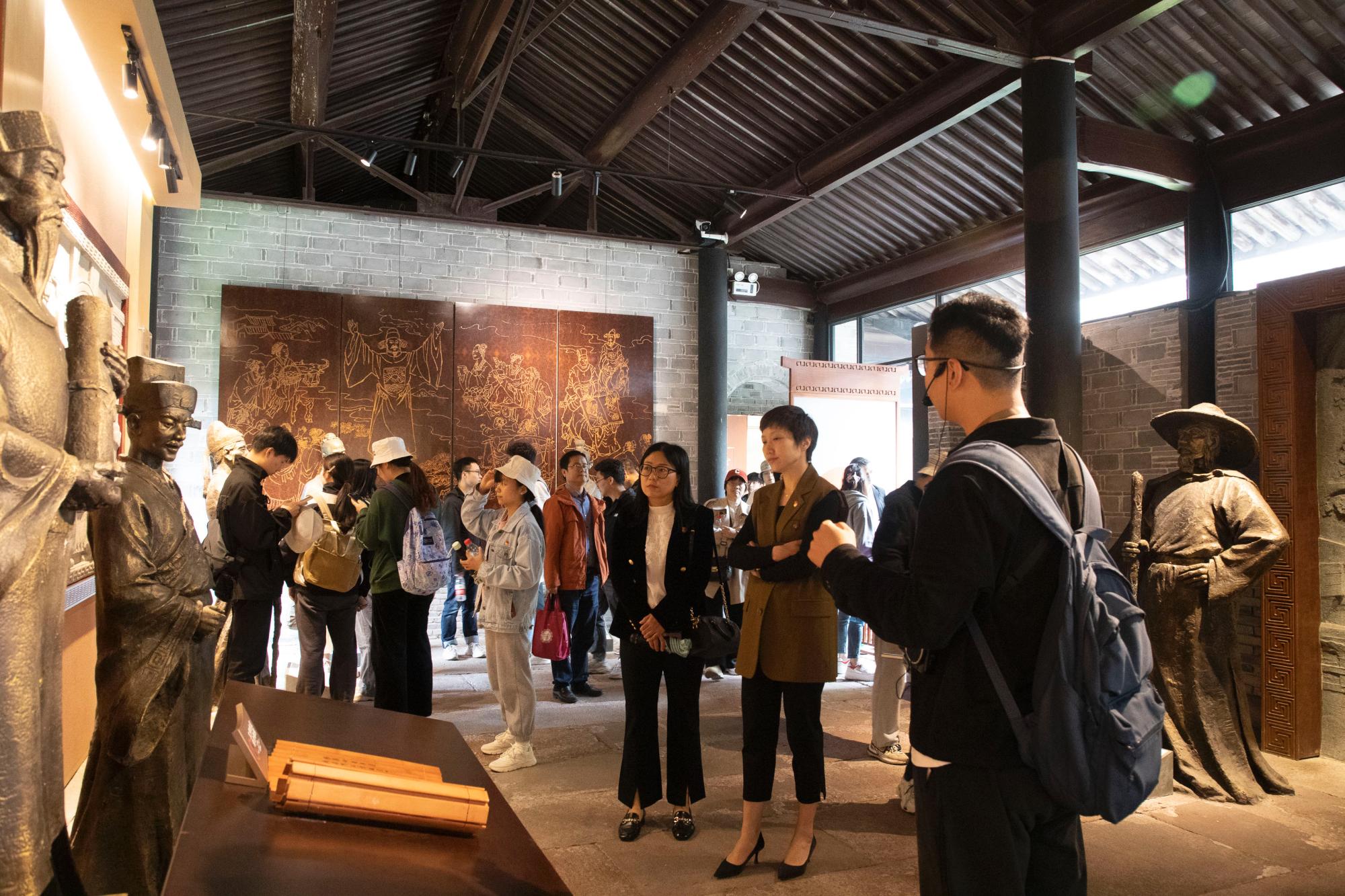 在工作人员讲解下,党员师生首先参观了真理园(冯定故居),详细倾听了我国著名的马克思主义革命家、哲学家、教育家冯定先生的生平事迹,通过“沉浸式”党史学习教育引导大家追寻真理味道,凝聚奋进力量。随后一行人到达慈城古县衙清风园进行廉政文化学习,作为全国廉政教育基地,该展区借助文字、图片、壁画、雕塑、实物模型以及影视、电子书、多媒体等展示手段和表现形式,运用鲜明的视觉冲击,揭露贪官污吏的罪行,展现清官廉吏的正气,促使廉洁自律入脑入心,坚决抵制形式主义、官僚主义、享乐主义和奢靡之风。