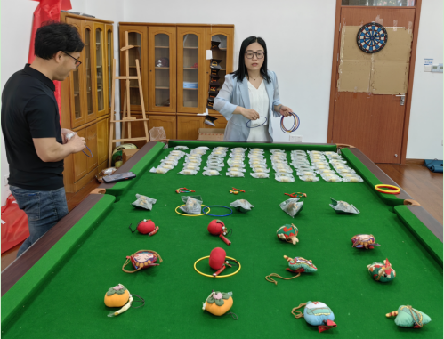 作为活动预热,学院工会准备了端午节风俗科普材料分享在工作群里。工会小伙伴们早早前往工会小家,将具有端午特色的五彩绳、香囊、香包、粽子、绿豆糕摆放整齐。老师们一边品尝可口的绿豆糕,一边研究套圈战术。随着一阵阵欢呼声,大家带着酣畅而温暖的笑容,满载而归。