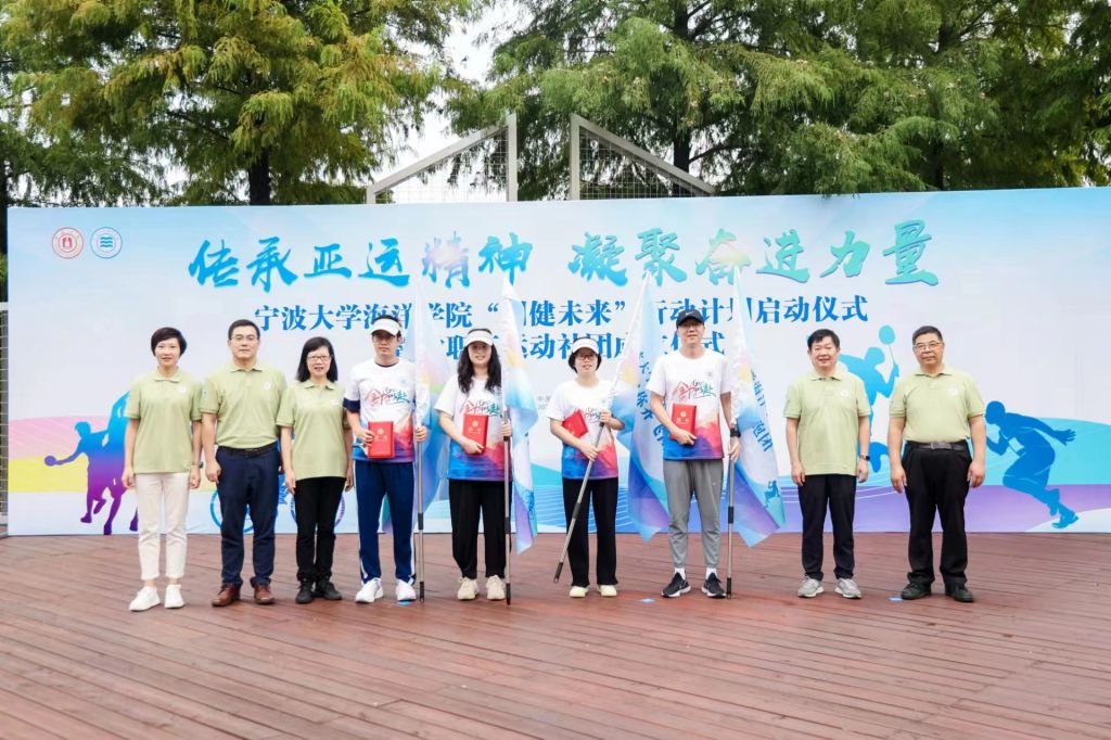 到场嘉宾为山海骑行团、羽你齐飞团、乒出精彩团和海洋乐跑团的四位团长颁发聘书并授旗。各位团长为社团成员赠送“入团礼”,四个运动社团在个性鲜明的口号声中逐一上台亮相。梅山校区四位分工会主席、师生社团负责人先后上台开展联盟、结对仪式。参与活动的师生们纷纷举起“我爱海洋,强院有我”“创健未来 我参与”“争当先行者,谱写新篇章”等手持牌在现场记录精彩瞬间。