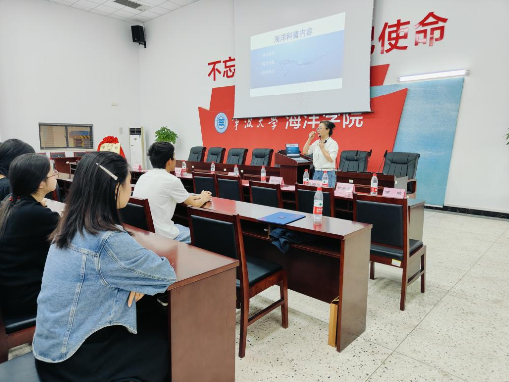 接着海洋学社负责人郑琦威同学汇报“海洋学社”的发展历程与阶段性成果,并进行“海洋学社”换届交接仪式。他表示,海洋学社自1999年成立后便一直专注于海洋知识的学习与拓展、科普和讲解,并多次与中试基地合作举办面向师生与社会的科普活动。“海洋学社”在成人小说