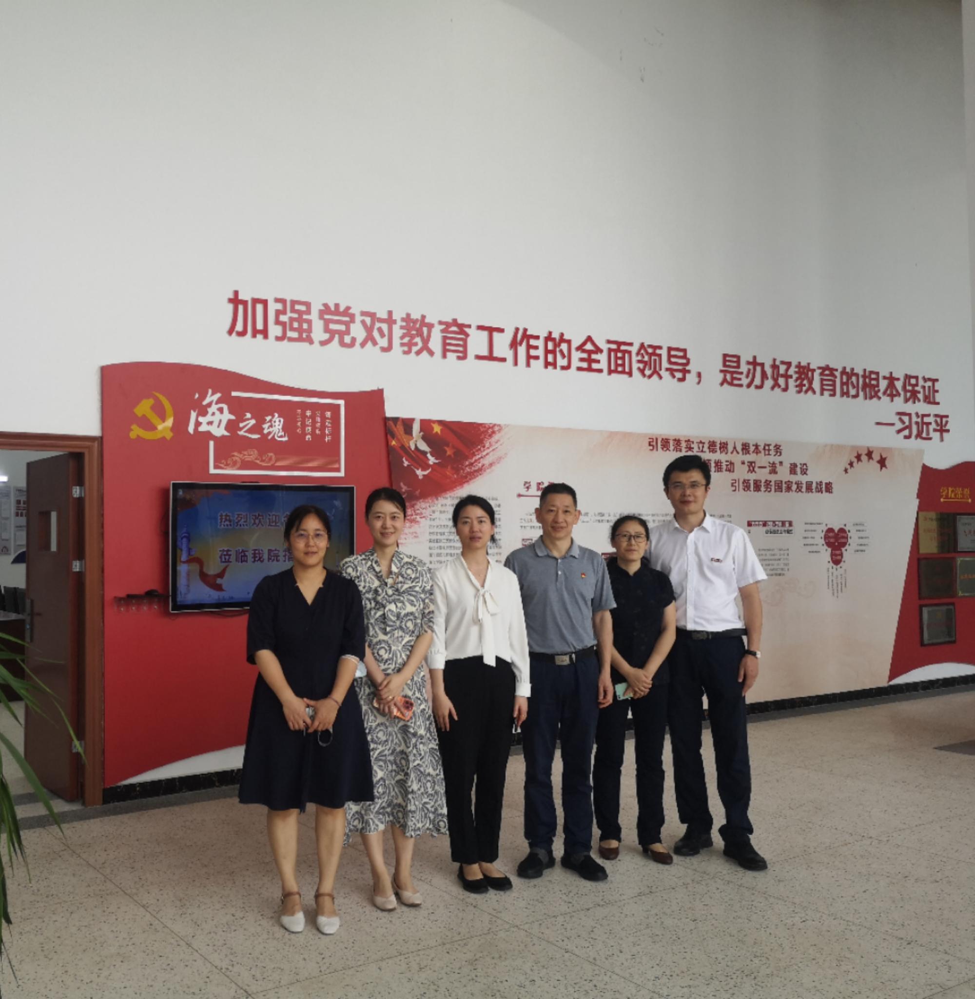 党委蔡真亮书记、副书记谢冰蕾进行了接待。来访客人走访了学院“全国党建工作标杆院系”建设示范点,蔡真亮就学院党委如何聚焦中心工作、“全国党建工作标杆院系”创建工作开展的基本情况、特色成效等内容进行了分享介绍,重点介绍了近年来学院在构建“党建+学科(群)”双促双进的“五五五”工作模式中的路径探索和成效等情况。