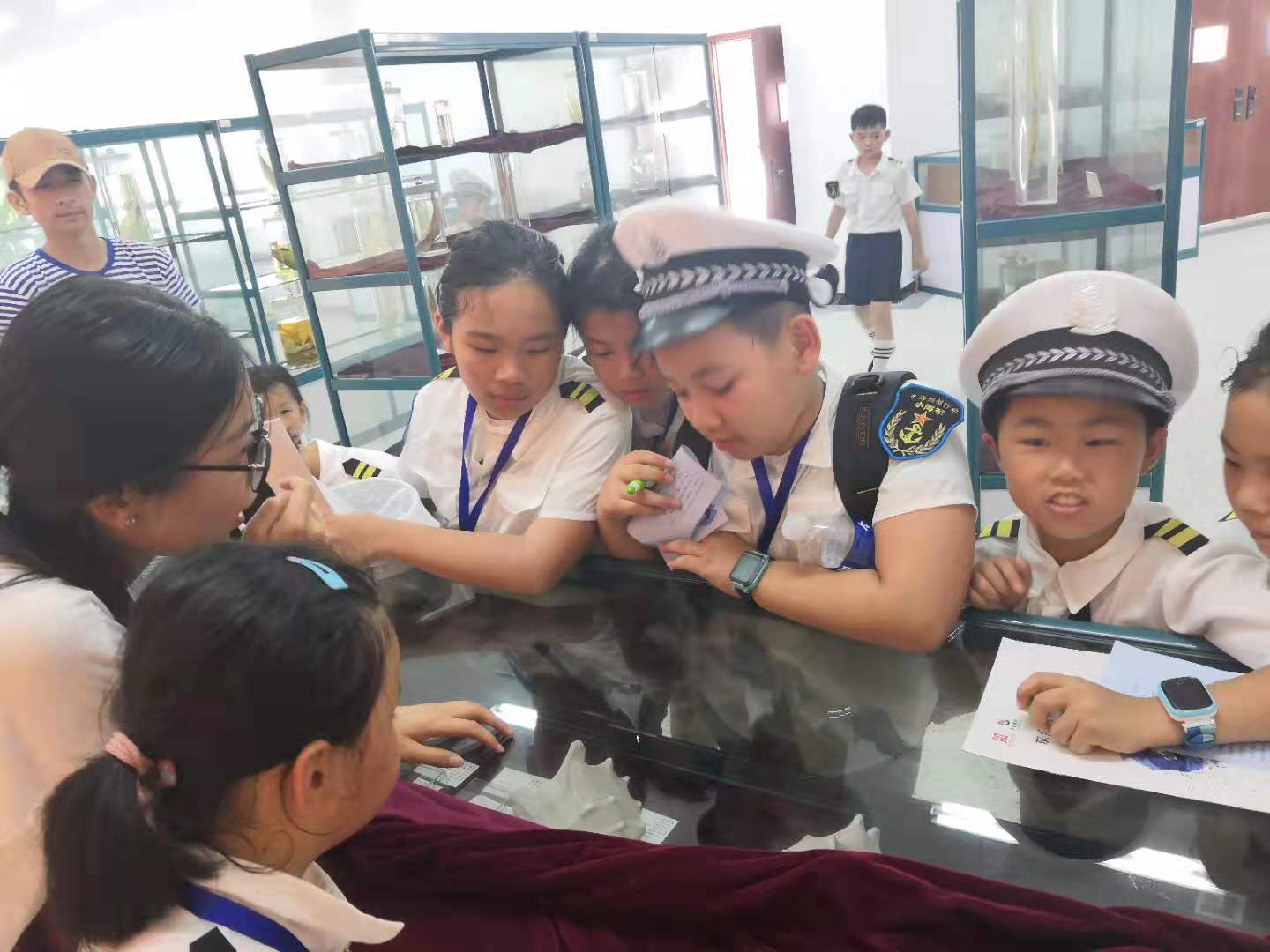 “党建+学科”的优势,教师党员根据学生的身心发展特点研制出集学习性、趣味性、益智性、科普性于一体的研学课程,学生党员作为指导老师积极参与到讲解活动中,将理论学习与实践锻炼有机结合,做到“知行合一”,与参观者分享海洋文化知识、交流生活经验、畅谈人生理想,为参观者点燃心中的“蓝色梦想”。