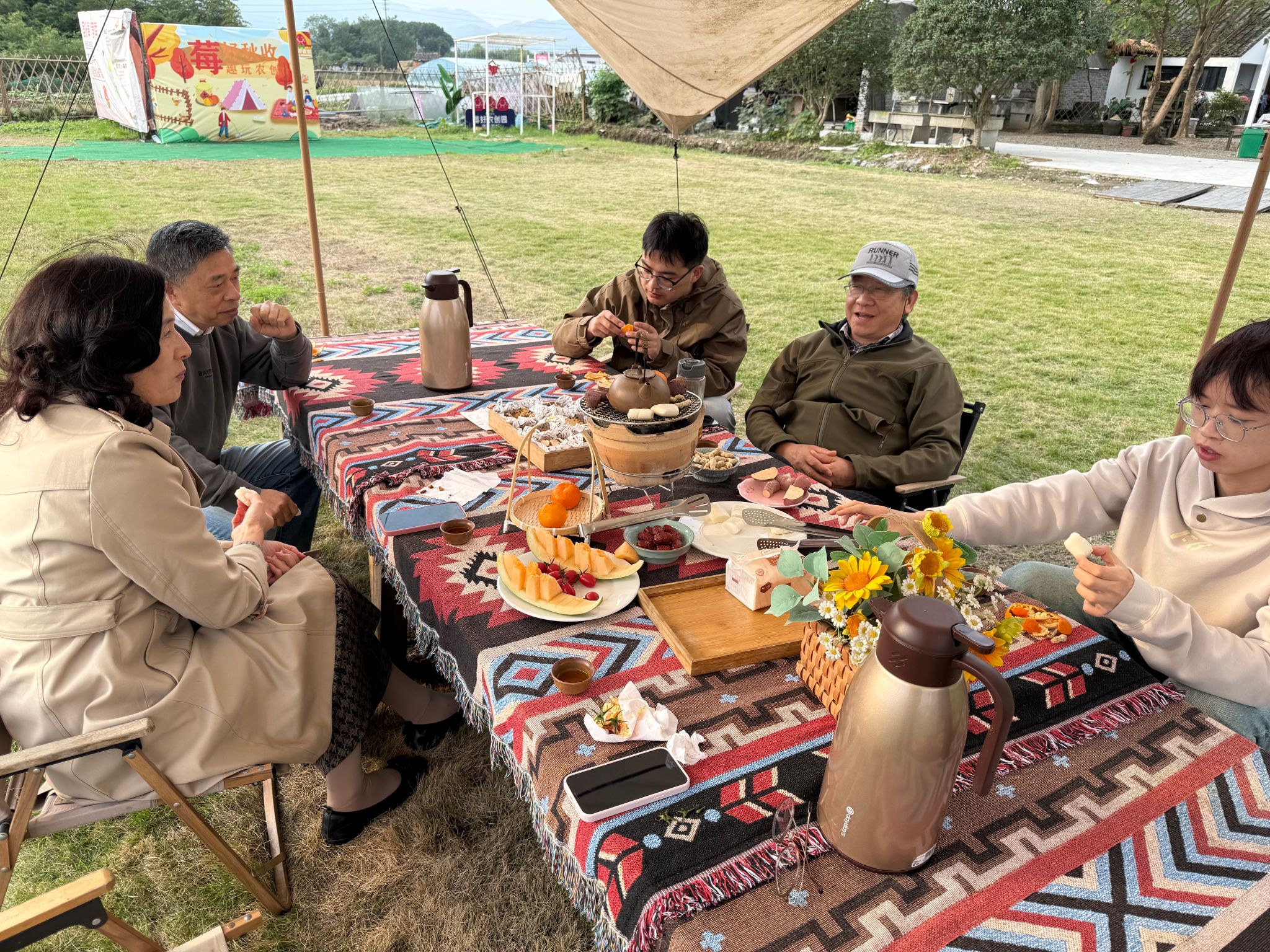 下午,稍作休整后,大家乘坐大巴来到了农创园进行围炉煮茶,退休教师与院领导围坐畅聊,就各自的生活进行分享,对学院的近况进行了解,为学院有如今的发展成就感到自豪,交流了对现代农业发展新形势的理解与认识,为下一步的水产学科建设发展提出建议。